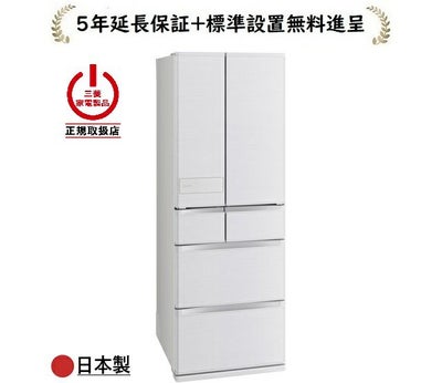 初期不良交換対応、三菱家電製品正規取扱店、メーカー修理サービス対応。 三菱電機 MR-JW55N-W[5年延長保証進呈/標準設置無料]547L 6ドア冷蔵庫MRJW55NW