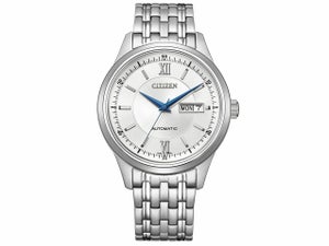 ・文字板は、視認性に優れたシンプルなデザイン。日付と曜日がすぐ確認できるデイ&デイト機能がついています。