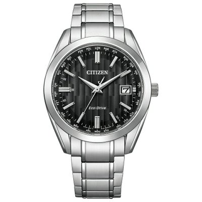 ケースとバンドにスーパーチタニウム?を採用した、ベーシックな3針タイプのエコ・ドライブ電波時計。ベゼルとバンドにはミラー面も取り入れ、上質感を演出しました。落ち着いたカラーで、縦方向にパターンをあしらった文字板はシンプルで見やすく、幅広いシーンでお使いいただけるデザインです。