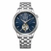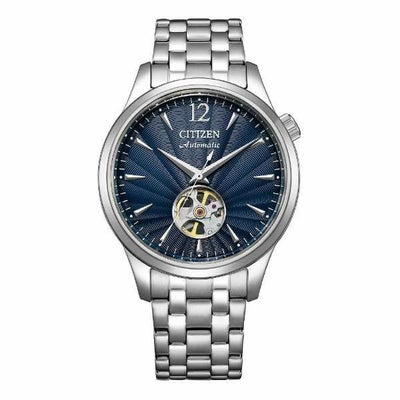 クラシカルモダンなデザインのメカニカルウオッチで、文字板6時の位置の窓からメカニカルウオッチの心臓部であるテンプの繊細な動きを堪能できるオープンハート仕様です。