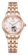 ・メカニカルウオッチならではの動きが楽しめるオープンハート仕様。桜の花の形に切り取られた開口部がアクセントになった特別感のあるデザインです。
