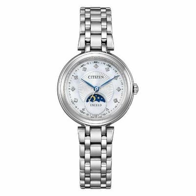 ダイヤモンドの輝きと多列バンドを用いたブレスレットデザインが、上品でエレガントな印象を与えるサン&ムーン搭載モデルです。
