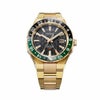 ベゼルに配色されたグリーンとブラックがゴールドの輝きをより一層際立たせ、モダンでスポーティな表情を演出します。