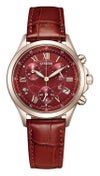 ・女性の腕になじみやすい、ミディアムサイズのエコ・ドライブクロノグラフ。サクラカラーのケースが肌を美しく見せる、クロスシーのbasic collection限定モデルです。