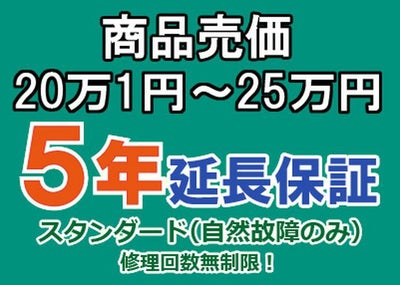 売価20万1円~25万円(税込)までの家庭用電気製品5年延長保証申込のレビューを書く